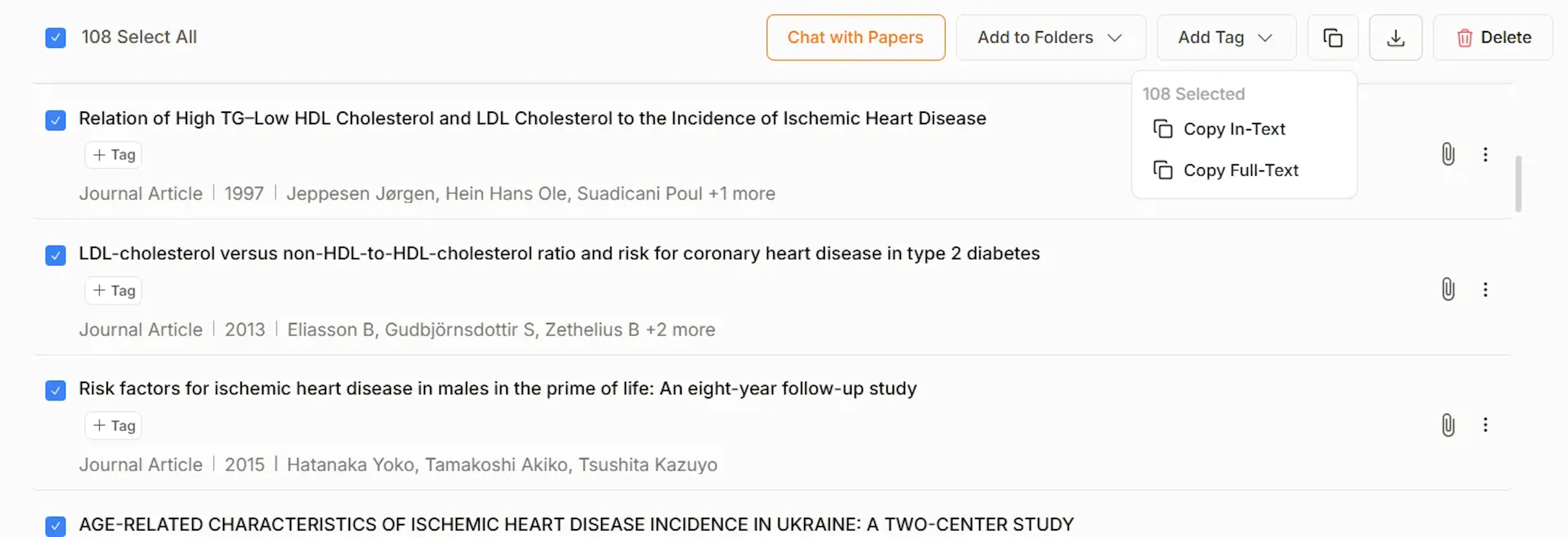 Quickly copy all citations used in your AI Writer document with a single click—perfect for seamless referencing.