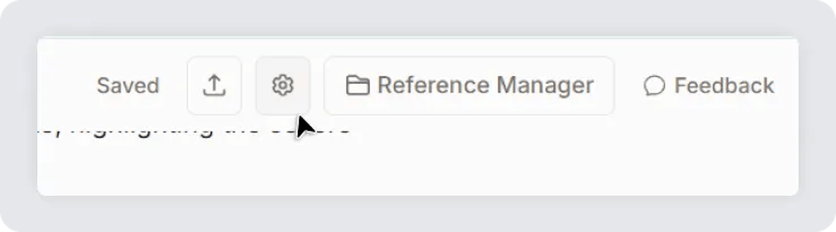 To edit document settings or prompt, select the "Gear" icon in the top right side of the Writer screen.