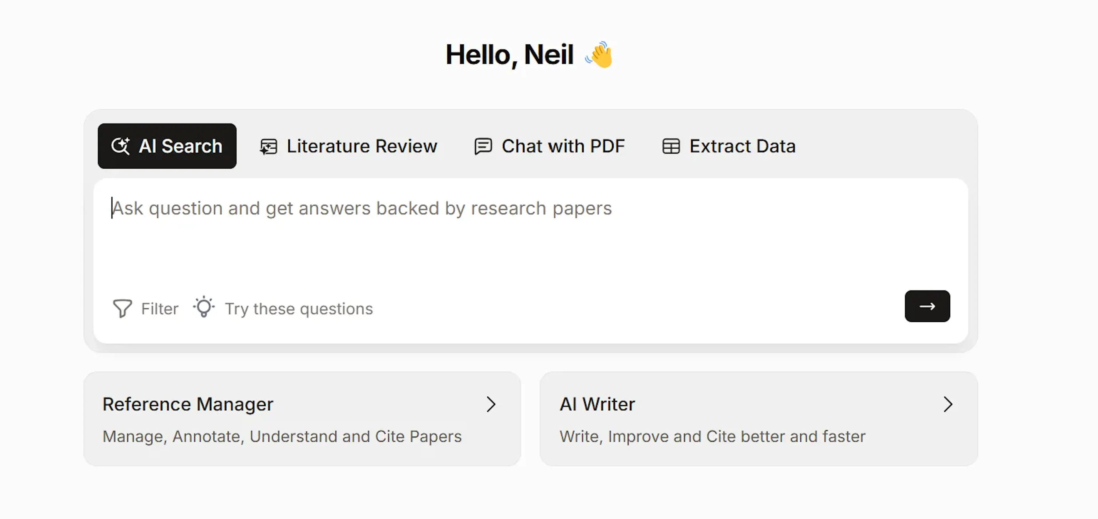 Paperguide AI Search 2.0 is an agent-driven workflow that takes you from question → evidence → answer in a single flow. It searches within Paperguide's large research corpus and guides you from your query to the most relevant studies, then to a synthesized, research-backed answer.