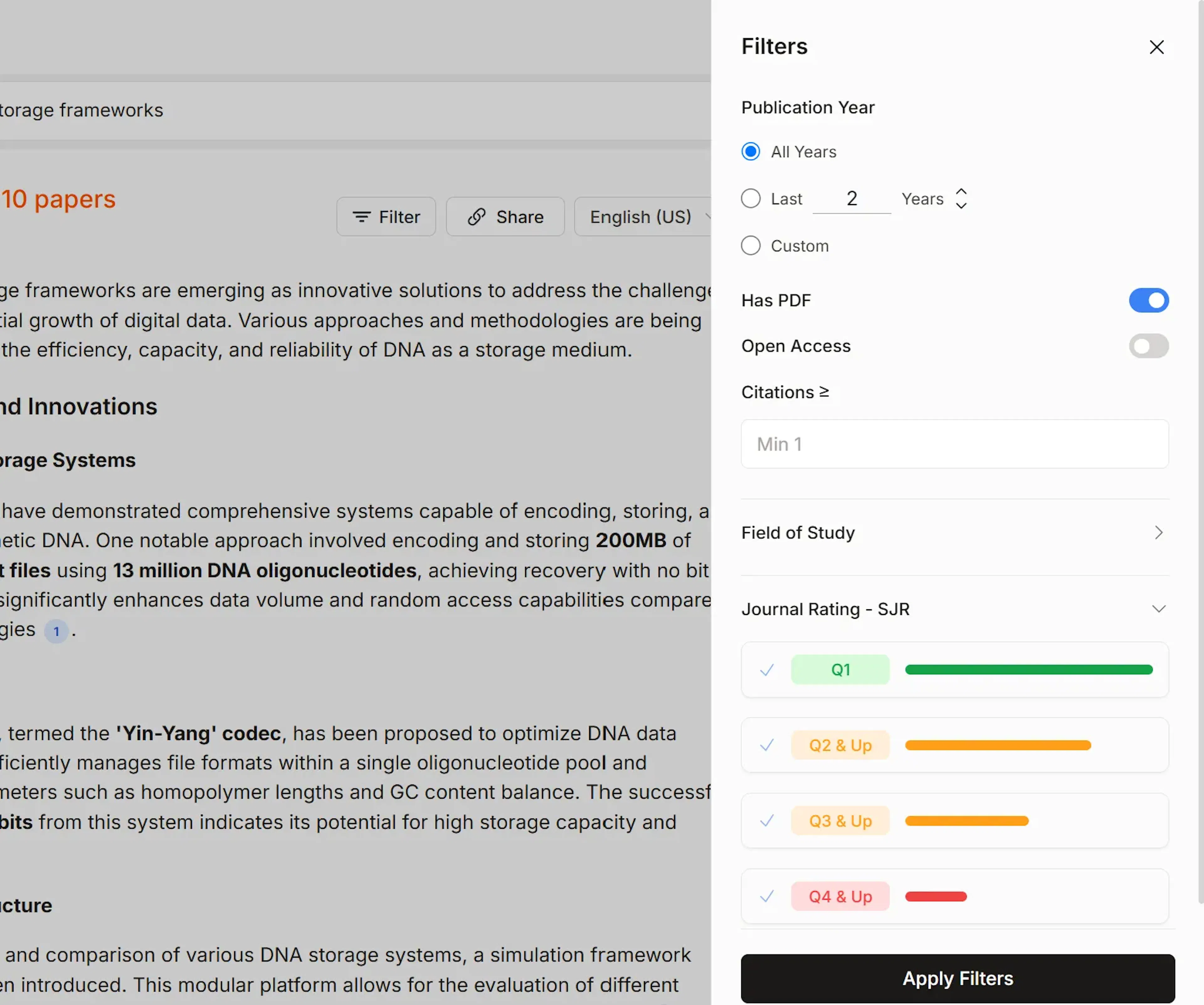 Tip: Use filters (by year, journal ranking, etc.) to refine results instantly.